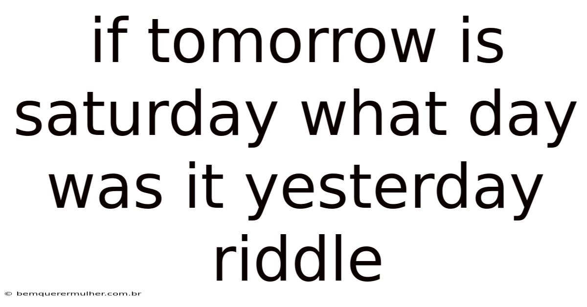 The riddle "If tomorrow is Saturday, what day was it yesterday?" is a classic example of a time-based logic puzzle that challenges our ability to think critically about days and sequences. This seemingly simple question has stumped many, not because it requires complex calculations, but because it plays with our perception of time and reverse reasoning. Understanding how to solve it not only sharpens your logical thinking but also offers insight into how our brains process temporal information.