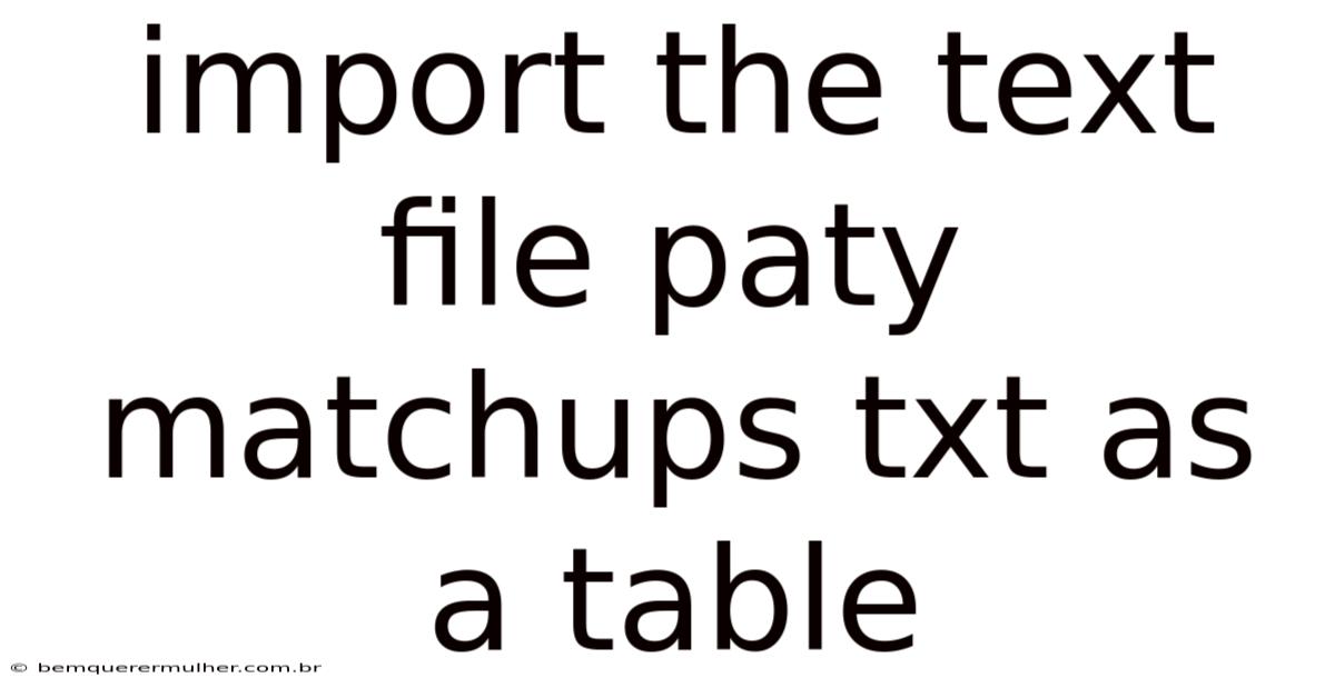 Working with raw data often begins with a simple text file, but transforming that unstructured information into a readable format requires the right approach. If you need to import the text file paty matchups txt as a table, you are tackling a common data management challenge faced by analysts, tournament organizers, and researchers alike. Plain .Now, txt files store information in a linear, character-based format, which makes them lightweight and universally compatible, but difficult to analyze directly. Converting that file into a structured table unlocks sorting, filtering, statistical analysis, and visualization capabilities. This guide breaks down the most reliable, step-by-step methods to transform your matchup data into a clean, functional table using spreadsheet software, cloud tools, and programming automation.