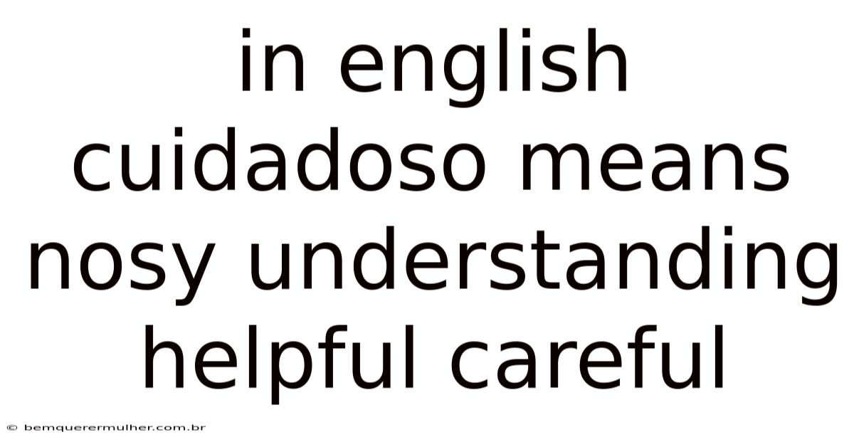 When learning a new language, one of the most challenging aspects is encountering words that seem to have multiple meanings depending on the context. Still, a prime example of this is the Spanish word cuidadoso. In real terms, if you are trying to determine if cuidadoso means nosy, understanding, helpful, or careful, the short and definitive answer is that its primary and literal translation is careful. Still, language is rarely just about literal definitions; it is about nuance, intention, and the situation in which the word is spoken That alone is useful..