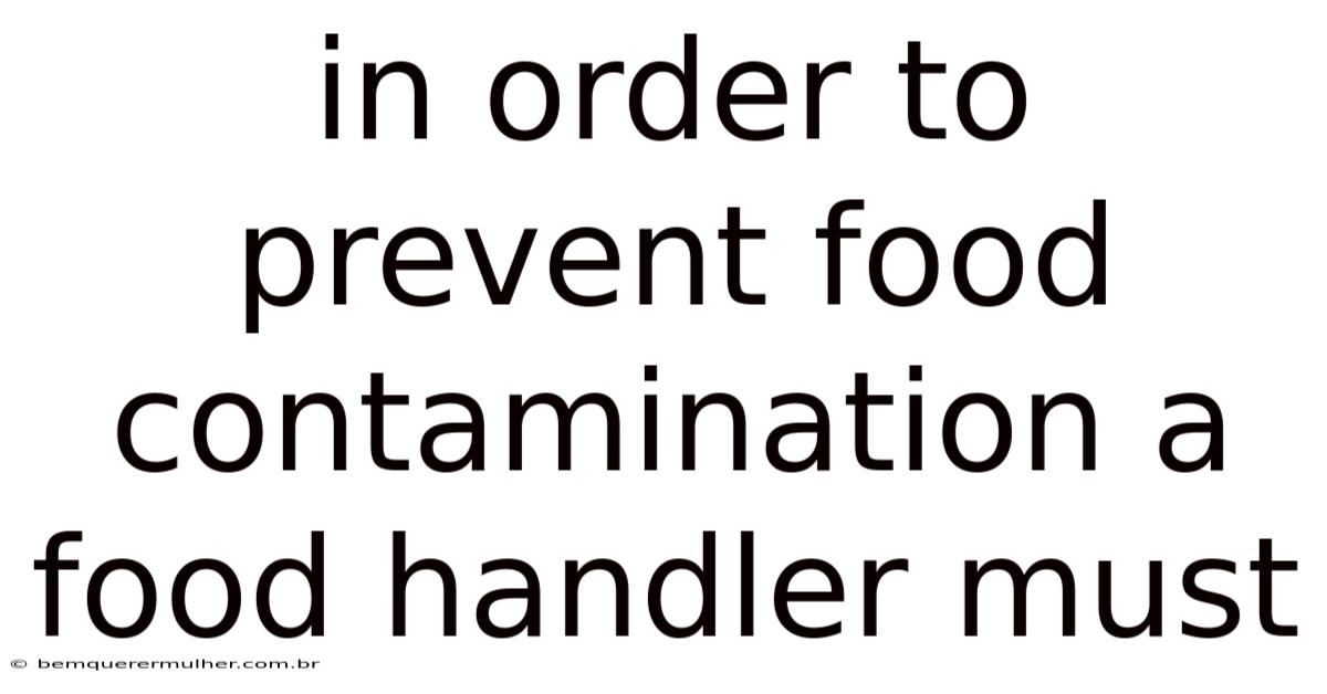 In Order To Prevent Food Contamination A Food Handler Must