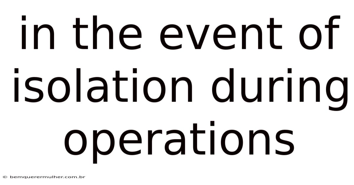 Isolation during operations is a condition where personnel or units are separated from main forces, logistical support, or reliable communication during an ongoing mission.