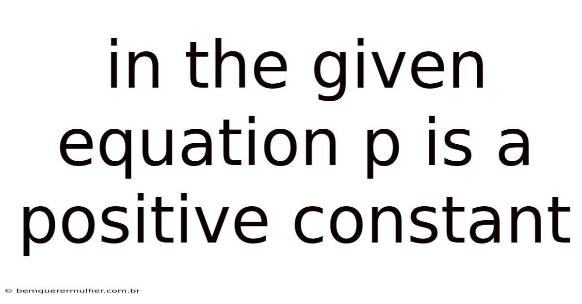 When you encounter an equation where p is a positive constant, it signals that the symbol p represents a fixed, non‑negative value that never changes within that mathematical context. This simple yet powerful notion appears in countless formulas across algebra, calculus, physics, and engineering, shaping how we model real‑world phenomena and solve abstract problems. And in this article we will unpack the meaning of a positive constant, explore why its positivity matters, examine typical equations that feature p, and provide practical strategies for working with such expressions. By the end, you will have a clear, intuitive grasp of how p is a positive constant influences mathematical reasoning and why recognizing this condition is essential for accurate problem‑solving.