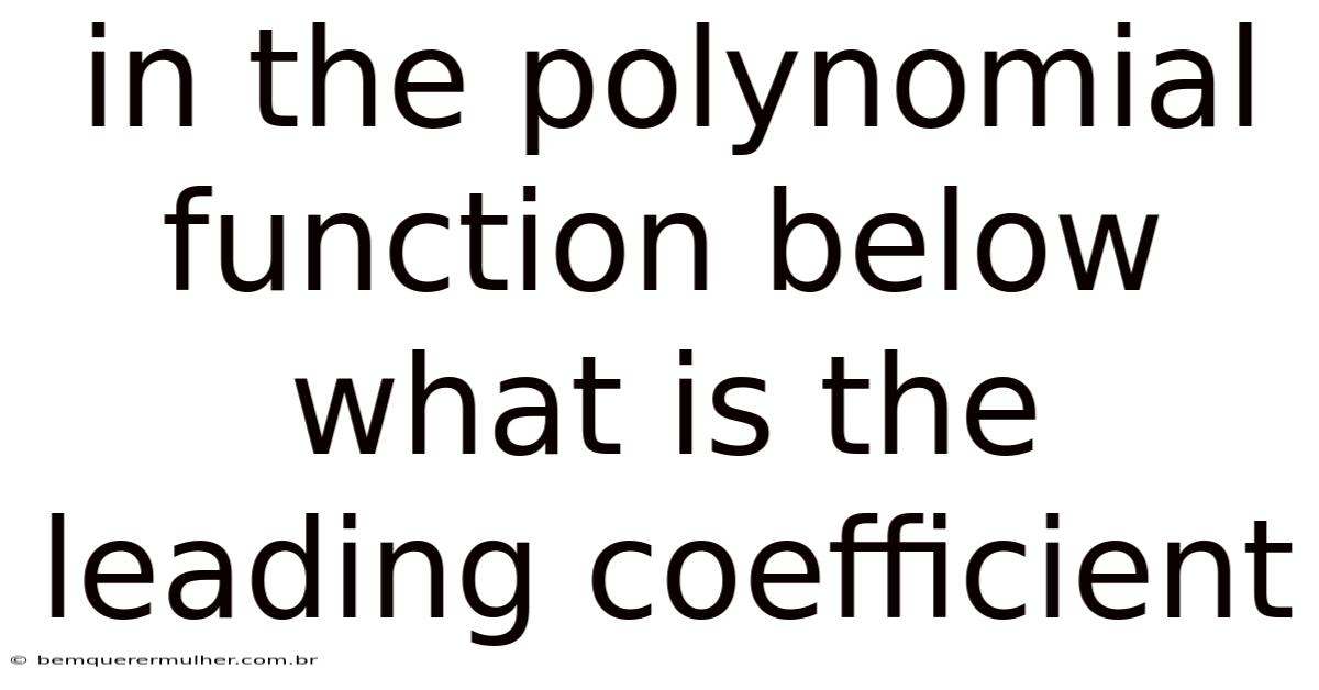 Identifying the leading coefficient in a polynomial function is a fundamental skill in algebra and calculus. On top of that, by understanding how to locate and interpret this value, you gain deeper insights into the behavior and characteristics of polynomial functions. On top of that, remember to always arrange the polynomial in standard form, identify the term with the highest exponent, and note the coefficient's sign and magnitude. The leading coefficient not only determines the end behavior of the graph but also makes a real difference in various polynomial operations and transformations. With practice, identifying the leading coefficient will become second nature, enhancing your overall understanding of polynomial functions and their applications in mathematics and beyond.
