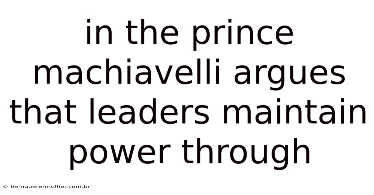 In The Prince, Machiavelli Argues That Leaders Maintain Power Through Strategic Ruthlessness, Reputation, and Pragmatic Governance
