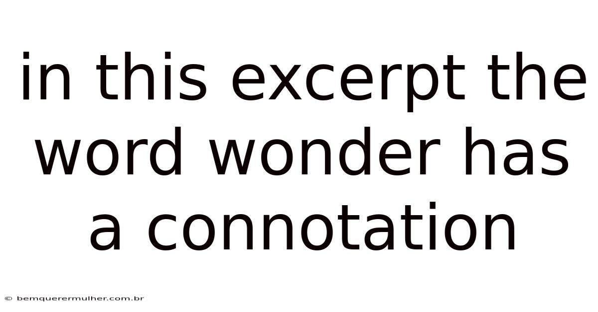 In this Excerpt the Word “Wonder” Has a Connotation