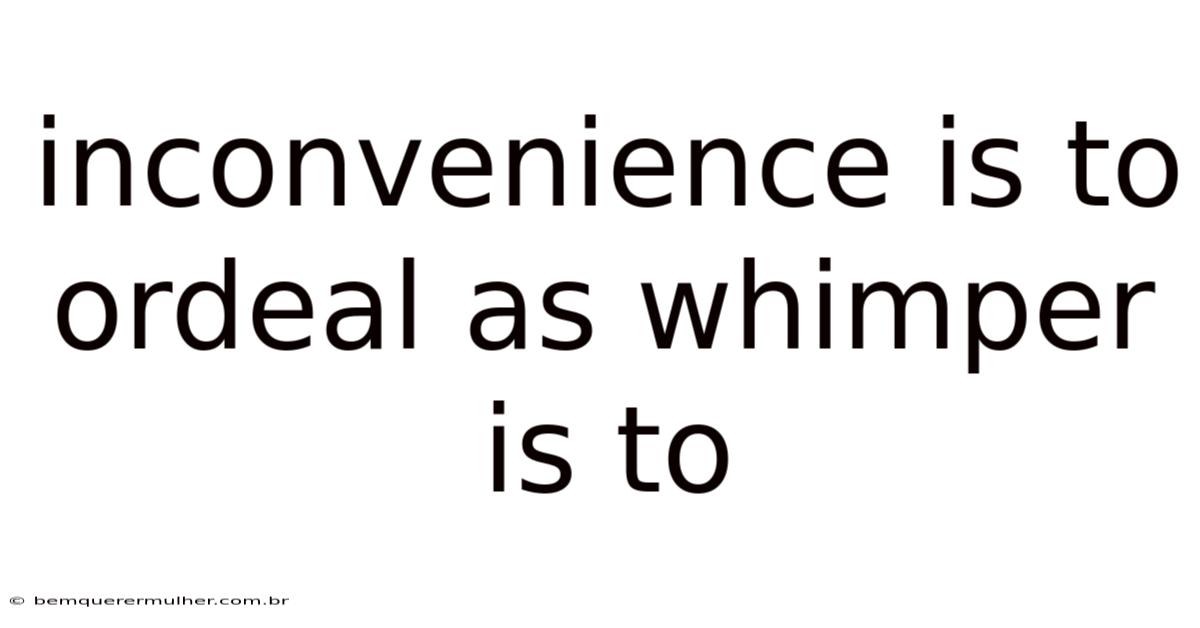 The linguistic analogy "inconvenience is to ordeal as whimper is to...In real terms, " serves as a powerful metaphor for understanding the gradations of human difficulty. Even so, it reminds us that our language is a tool for mapping the complex landscape of experience, from the fleeting annoyance that makes us sigh to the overwhelming trials that reduce us to a whimper. Recognizing this spectrum fosters empathy, allowing us to better comprehend the varying degrees of challenge others face and the nuanced ways they express their struggles. It underscores the profound truth that suffering, in its many forms, is a universal human condition, communicated through the subtle shifts in our vocabulary That's the part that actually makes a difference. Simple as that..