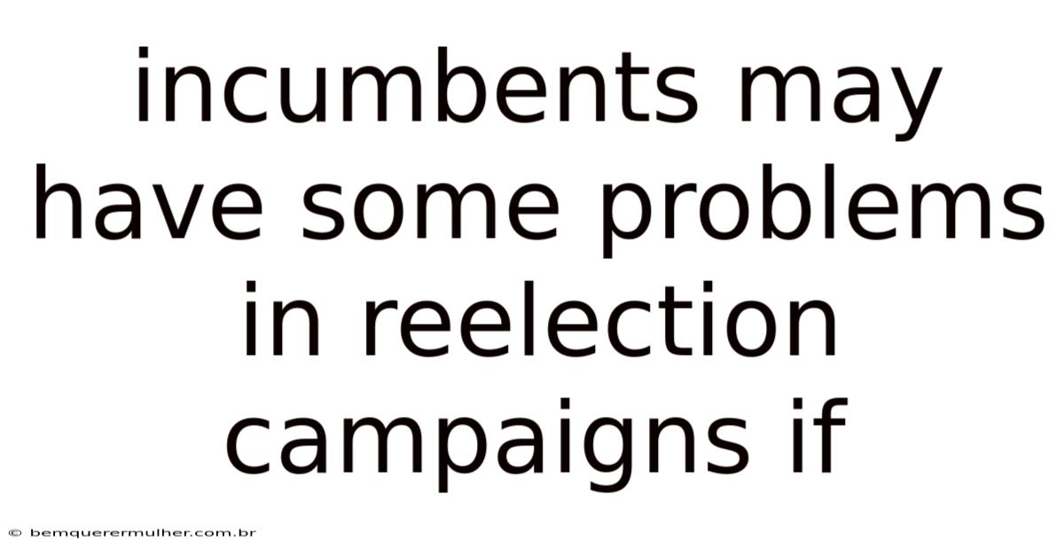 Incumbents May Have Some Problems In Reelection Campaigns If