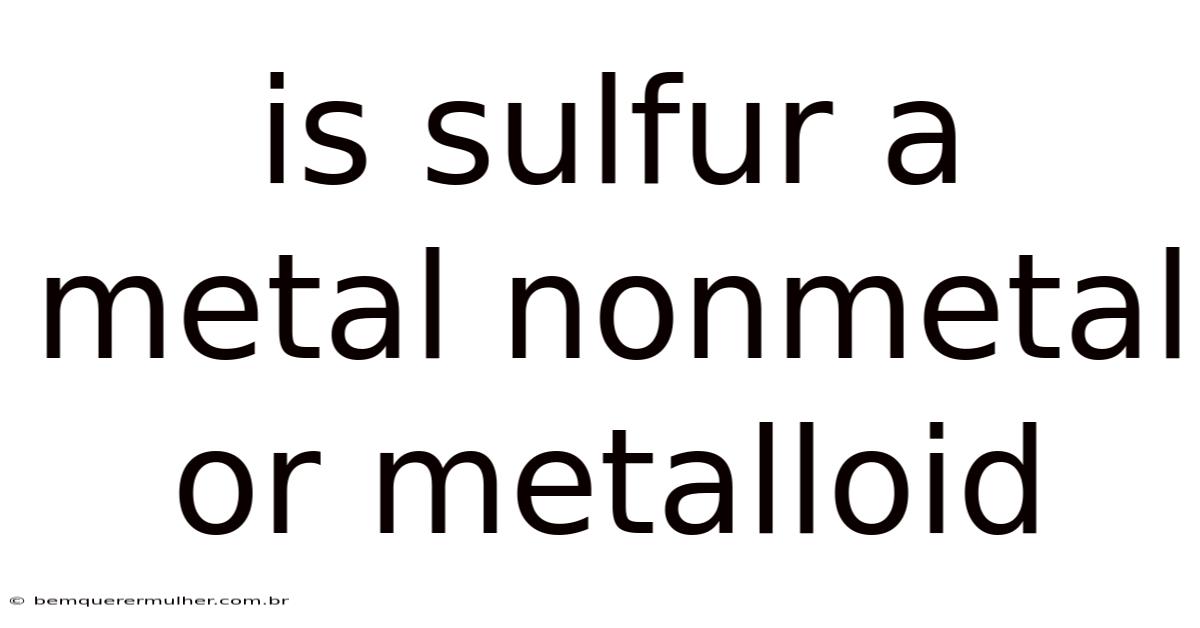 The classification of sulfur as a metalloid is often debated, but Make sure you understand the context in which this term is used. Metalloids are elements that possess properties intermediate between metals and nonmetals. Sulfur falls into this category because it has some metallic characteristics, such as its ability to form alloys or conduct electricity in certain forms. Plus, it matters. Even so, its overall behavior and properties align more closely with nonmetals.