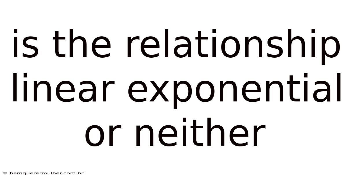When analyzing data or mathematical models, Determining the nature of the relationship between variables stands out as a key questions. Is it linear, exponential, or neither? This distinction is fundamental in fields ranging from economics and biology to engineering and data science. Consider this: misclassifying a relationship can lead to flawed predictions, incorrect conclusions, and inefficient problem-solving. Because of that, in this article, we will explore what defines linear and exponential relationships, how to recognize them, and why some relationships defy these categories altogether. By the end, you’ll have a clear framework to analyze any dataset or scenario Nothing fancy..