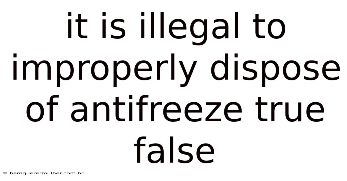 It is illegalto improperly dispose of antifreeze true false – this question often arises when homeowners, mechanics, and DIY enthusiasts wonder about the legal ramifications of dumping used coolant. Understanding the truth behind the statement requires a look at environmental regulations, state statutes, and the practical steps needed to handle this hazardous material responsibly. Below is a complete walkthrough that explains why the claim holds weight in many jurisdictions, what penalties can follow, and how to manage antifreeze disposal in compliance with the law Simple as that..