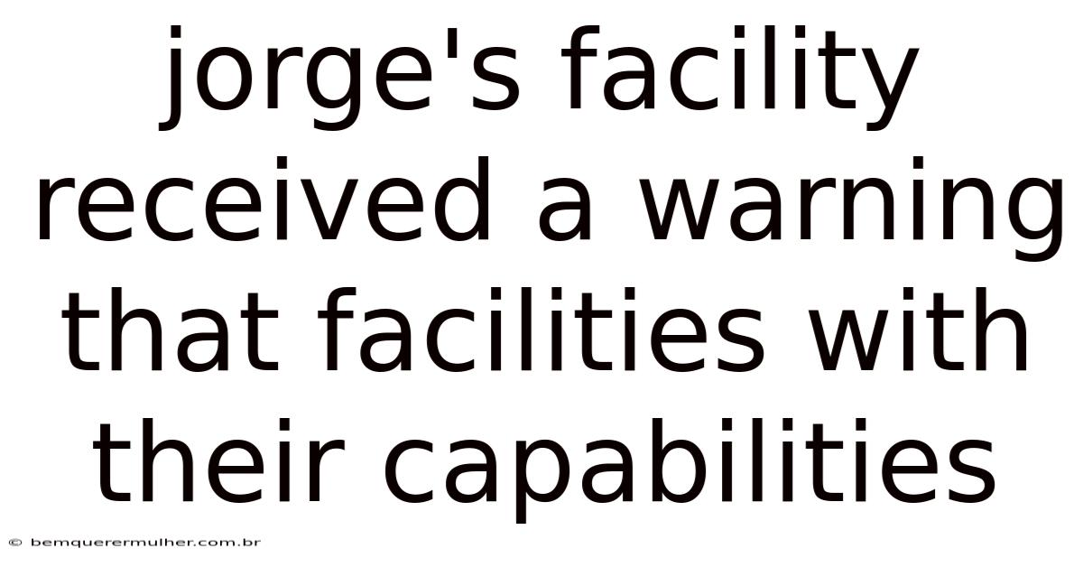 Jorge's Facility Faces a Critical Warning Over Its Capabilities