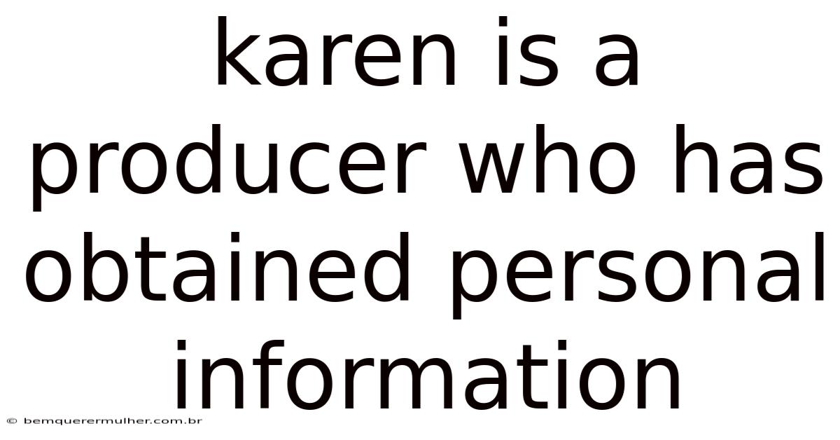 In today’s data‑driven media landscape, the phrase Karen is a producer who has obtained personal information signals more than a simple fact‑finding mission; it underscores a duty to protect, process, and respect that data. Plus, whether the information consists of viewer demographics, biometric identifiers, or sensitive health details, the stakes involve legal compliance, brand reputation, and audience confidence. This guide breaks down the essential components of responsible data stewardship for producers, equipping them with actionable insights and a solid foundation for ethical decision‑making That's the part that actually makes a difference..