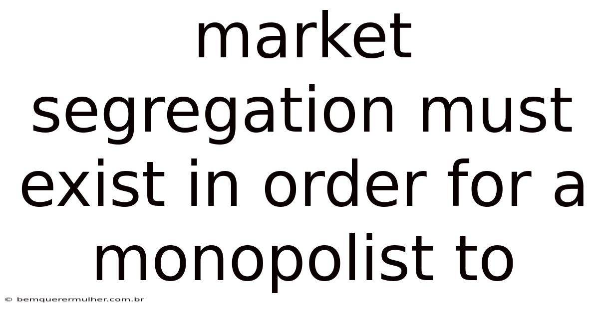 The dynamics of economic systems shape the very fabric of societies, dictating opportunities and constraints for individuals and organizations alike. Which means at the core of this interplay lies the concept of market segmentation, a strategy that influences how resources are allocated, competition is managed, and power is distributed within a marketplace. While many assume that markets operate in a fluid, interconnected environment, the reality often reveals a more structured hierarchy where deliberate divisions play a key role. One such division stands out as critical to understanding the persistence of monopolistic structures: market segregation. This phenomenon, though seemingly counterintuitive at first glance, underscores the necessity of dividing the market into distinct segments to consolidate control, enhance efficiency, and reinforce dominance. In practice, the ability of a monopolist to thrive hinges on the strategic implementation of these divisions, which act as both a shield and a catalyst for maintaining their grip on resources, influence, and authority. In practice, by examining the mechanisms through which market segmentation operates, it becomes evident that without such divisions, the balance of power in economic systems would collapse, leaving no room for sustained monopolistic influence. This article gets into the multifaceted role of market segregation in enabling monopolists to manage competitive landscapes effectively, ensuring their survival and growth amidst evolving market conditions. Through this exploration, we uncover how segmentation transcends mere categorization; it becomes a deliberate tool wielded by those seeking to control outcomes, shape outcomes, and sustain their influence Surprisingly effective..