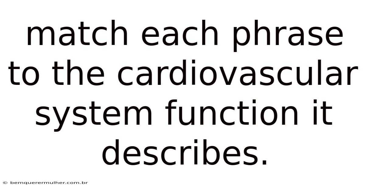 Below is a set of phrases on the left and a list of cardiovascular functions on the right. Your task is to pair each phrase with the correct function. After the table, each match is broken down with a concise explanation, bolded key terms, and occasional italics for foreign or technical words But it adds up..