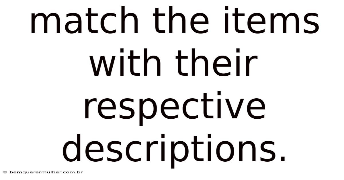 At its core, matching items with their descriptions involves pairing a term, object, or concept with its correct definition, characteristic, or explanation. This process tests your understanding of relationships between ideas and your ability to recognize accurate associations. For example, matching a country with its capital city, a chemical element with its symbol, or a vocabulary word with its meaning.