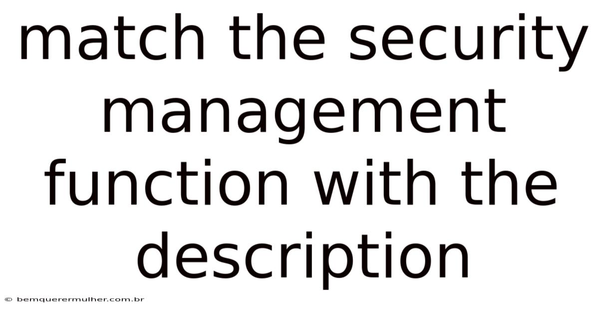 Security management functions are essential components that help organizations protect their assets, information, and people from various threats. On the flip side, each function serves a specific purpose in the overall security framework, working together to create a comprehensive defense system. Let's explore the key security management functions and match them with their proper descriptions.