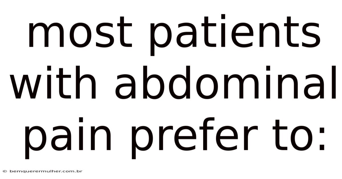 The preference of most patients with abdominal pain to self-manage, delay care, or seek non-clinical solutions is a complex behavior rooted in human psychology and practical realities. Worth adding: while these choices are often driven by a desire for autonomy and convenience, they carry inherent risks. Practically speaking, the key to navigating abdominal discomfort safely lies not in rejecting medical science, but in empowering patients with better knowledge. Day to day, by understanding the reasons behind our preferences and recognizing the red flags that demand professional attention, individuals can make informed decisions that prioritize their long-term health. When all is said and done, the goal is to bridge the gap between instinctive self-care and evidence-based medical guidance, ensuring that abdominal pain is addressed not just with preference, but with wisdom and care Worth knowing..