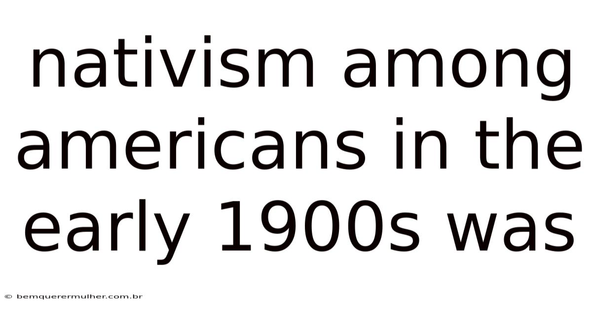 What were the main reasons for the rise of nativism in the early 1900s?