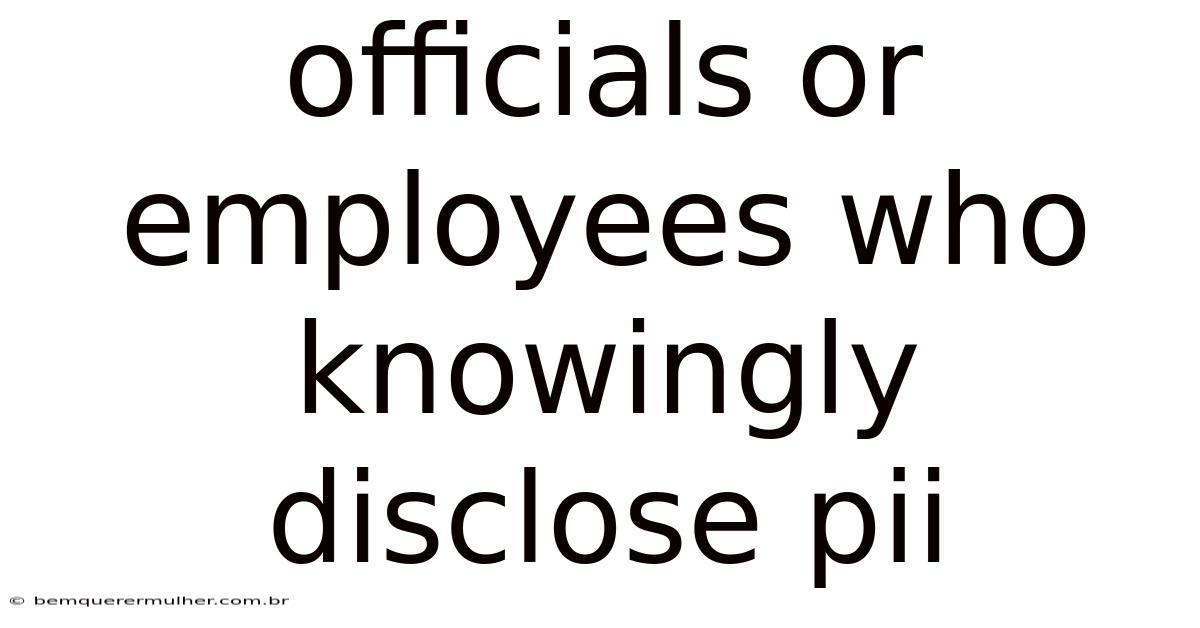 Officials or employees who knowingly disclosePII expose individuals to identity theft, financial loss, and reputational harm while violating legal obligations and eroding public trust. This article examines the legal definitions, motivations, real‑world consequences, and proactive measures that organizations can adopt to curb unauthorized disclosures of personally identifiable information That's the whole idea..