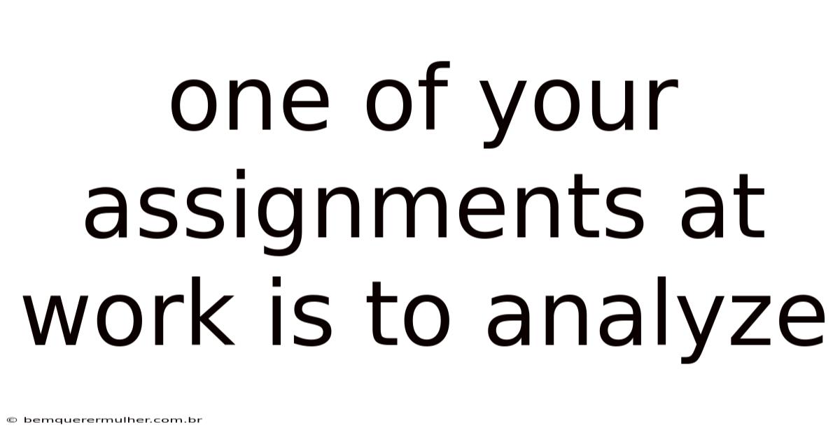 One Of Your Assignments At Work Is To Analyze
