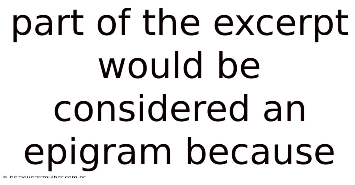 When analyzing literature, you may encounter a statement that reads, part of the excerpt would be considered an epigram because it captures a sharp, self-contained truth through concise language, unexpected wit, or a memorable paradox. Plus, this classification is not arbitrary; it signals that a specific passage has crossed the threshold from ordinary description into the realm of refined literary craftsmanship. In real terms, an epigram functions as a linguistic snapshot, delivering insight, satire, or philosophical observation in a tightly wound package. Recognizing why certain excerpts earn this label equips readers with a deeper appreciation for authorial intent, structural precision, and the enduring power of brevity in written expression.