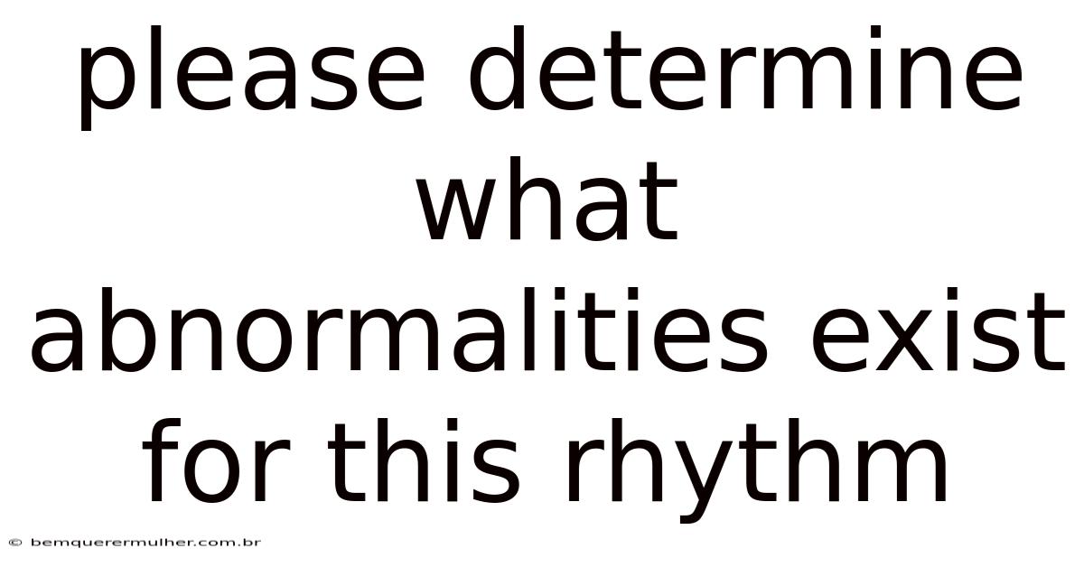 Understanding cardiac rhythm abnormalities is essential for healthcare professionals, students, and anyone interested in electrocardiogram (ECG) interpretation. An ECG records the electrical activity of the heart and reveals crucial information about its function. By analyzing waveforms, intervals, and segments, you can determine what abnormalities exist for any given rhythm and provide appropriate medical intervention when necessary Not complicated — just consistent..