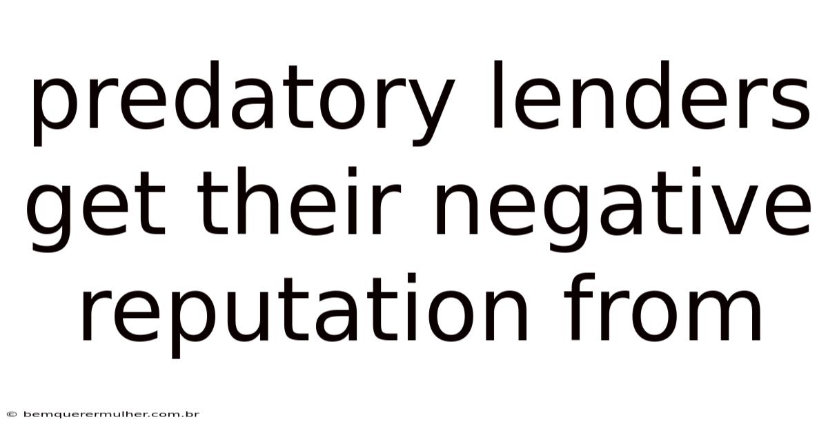Predatory Lenders Get Their Negative Reputation From
