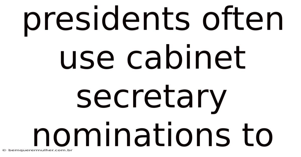 The appointment of a president’s cabinet is far more than a simple administrative task of filling vacant government posts. On top of that, it is one of the most potent and visible strategic tools a chief executive possesses. Presidents often use cabinet secretary nominations to achieve a complex array of political, policy, and personal objectives, transforming what might seem like a routine personnel decision into a cornerstone of their governing strategy. These nominations are carefully crafted messages sent to Congress, the nation, and the world, revealing a president’s priorities, rewarding their allies, balancing internal factions, and attempting to steer the vast machinery of the federal government toward their vision. Understanding this practice is key to decoding the inner workings of presidential power and the long game of American politics That's the part that actually makes a difference..
