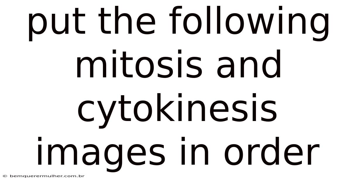 Put the Following Mitosis and Cytokinesis Images in Order is a fundamental exercise in understanding the continuous process of cell division. This task requires you to analyze sequential photographs or diagrams, interpret the visual cues of chromosomal behavior, and reconstruct the timeline of events that transform a single parent cell into two genetically identical daughter cells. Mastering this skill is crucial for biology students and professionals alike, as it bridges the gap between theoretical knowledge of the cell cycle and the observable reality of microscopic change Easy to understand, harder to ignore..