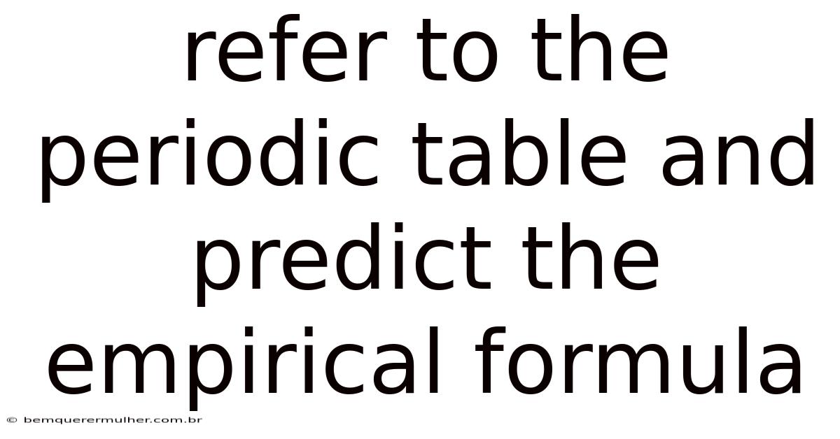 refer to the periodic table and predict the empirical formula is a fundamental skill in chemistry that bridges the gap between elemental composition and chemical structure. Here's the thing — understanding how to translate the relative numbers of atoms in a compound into its simplest whole‑number ratio enables students to decode molecular formulas, assess purity, and compare substances across disciplines. This article walks through the logical steps, the underlying scientific principles, and common pitfalls, offering a clear roadmap for anyone eager to master empirical formula prediction from periodic‑table data.