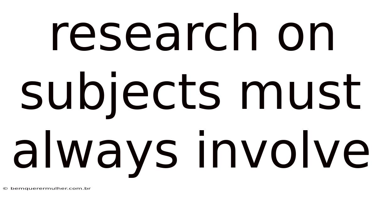 At its core, involving subjects in research means acknowledging their role as active participants rather than passive subjects. Similarly, in social science studies, interviewees should feel empowered to withdraw at any stage. The phrase "research on subjects must always involve" reflects this ethical mandate. Think about it: for instance, in medical trials, participants must voluntarily consent to procedures after understanding potential risks and benefits. This approach recognizes that individuals have autonomy over their bodies, data, and decisions. It is not enough to merely observe or manipulate; researchers must engage participants meaningfully Worth knowing..