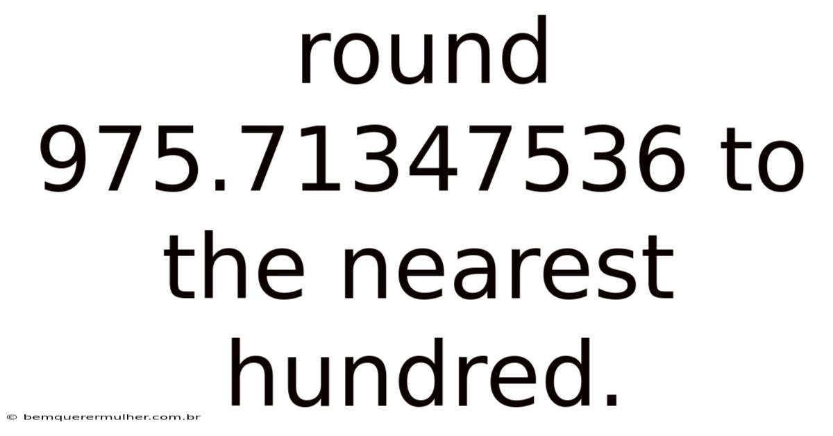 When a problem asks you to round to the nearest hundred, you are essentially asking: Which multiple of 100 is this number closest to? The multiples of 100 surrounding 975.71347536 are 900 and 1000. Your goal is to determine which benchmark sits closer on the number line by examining the digit that decides the direction.