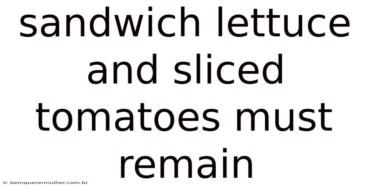 Conclusion: A Foundation for Flavor and Nutrition At the end of the day, the insistence on “must remain” – the preservation of fresh lettuce and sliced tomatoes – isn’t about rigid adherence to rules, but rather a recognition of their fundamental contribution to a truly exceptional sandwich. These seemingly simple ingredients are far more than just additions; they are vital components that deliver both a delightful sensory experience and a boost to nutritional value. By prioritizing quality, careful preparation, and thoughtful layering, sandwich enthusiasts can consistently achieve a sandwich that is both delicious and beneficial, proving that sometimes, the most impactful elements are the ones that are carefully preserved and thoughtfully integrated That's the part that actually makes a difference..