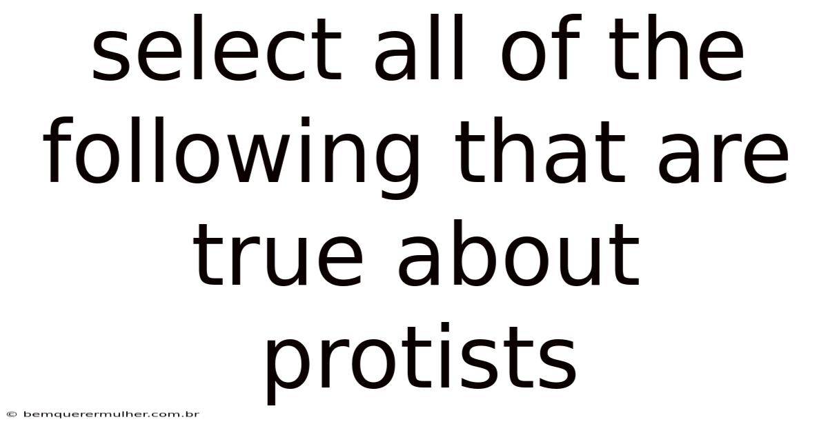Select All Of The Following That Are True About Protists
