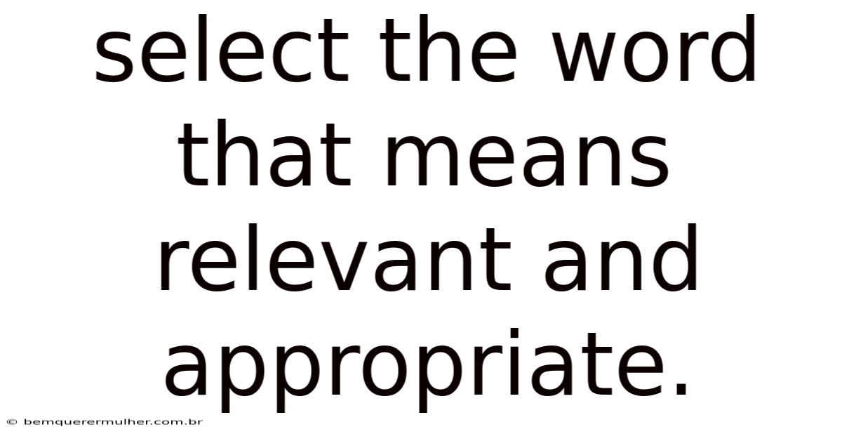 When a test or exercise asks you to select the word that means relevant and appropriate, it is evaluating your grasp of nuanced vocabulary. The ability to pinpoint the exact term that captures relevance and fitness within a given context is a cornerstone of effective communication, critical reading, and precise writing Most people skip this — try not to..