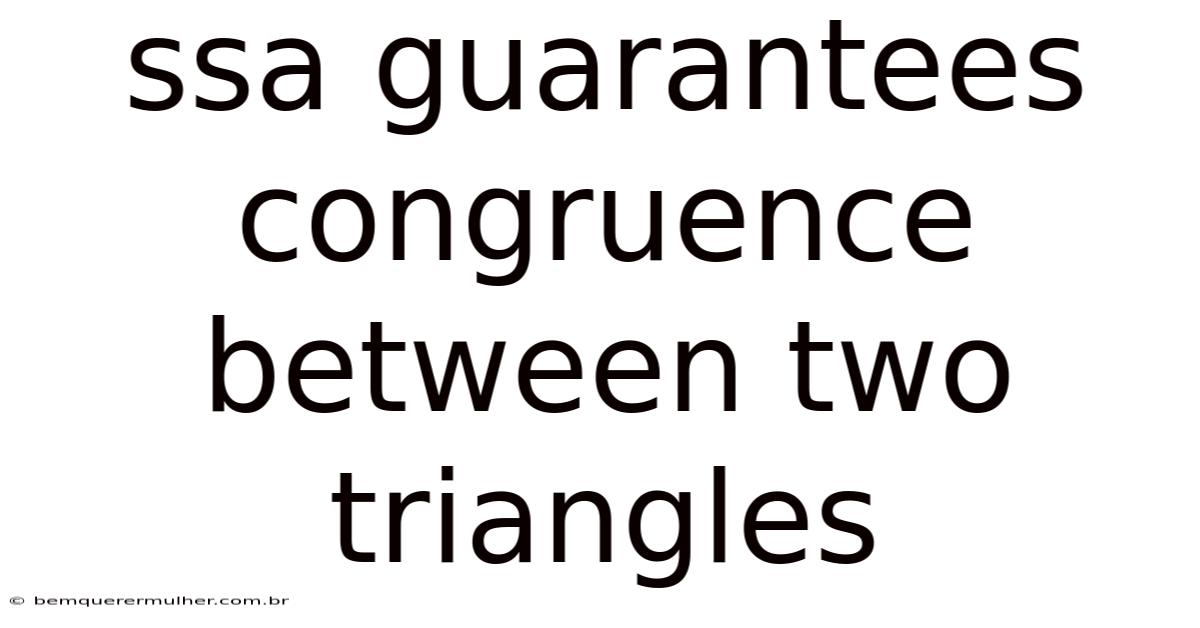 Ssa Guarantees Congruence Between Two Triangles