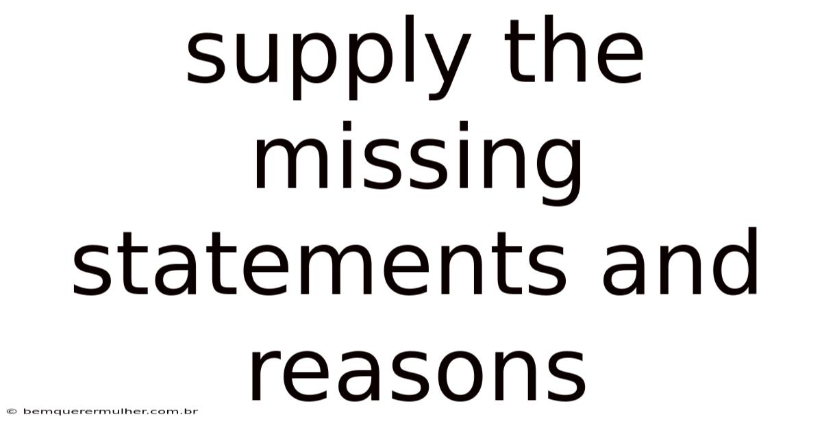 Supplying missing statements and reasons in geometric proofs is a skill that improves with practice and a solid understanding of geometric principles. Even so, by carefully analyzing the given information, applying relevant theorems, and ensuring logical flow, you can confidently complete any proof. Remember, each step in a proof is a building block toward the conclusion, and every reason must justify its corresponding statement. With persistence and attention to detail, you'll master the art of geometric proofs and strengthen your overall mathematical reasoning.
