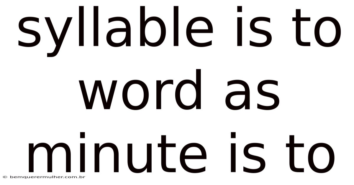 The analogy of syllable is to word as minute is to hour highlights the essential relationship between parts and wholes in both language and time. Because of that, syllables are the building blocks of words, just as minutes are the building blocks of hours. Understanding this relationship helps us appreciate the structure and complexity of both systems.