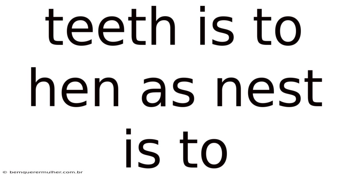 The phrase "teeth is to hen as nest is to..." is a classic example of an analogy, a rhetorical device used to draw parallels between two seemingly unrelated concepts. While the structure of the analogy is straightforward, its validity and interpretation depend heavily on context, logic, and the specific relationships being compared. On top of that, this article explores the nuances of this analogy, examines its potential meanings, and walks through the broader principles of analogical reasoning. By breaking down the components of the analogy and analyzing its implications, we can better understand how such comparisons function in language, education, and critical thinking No workaround needed..