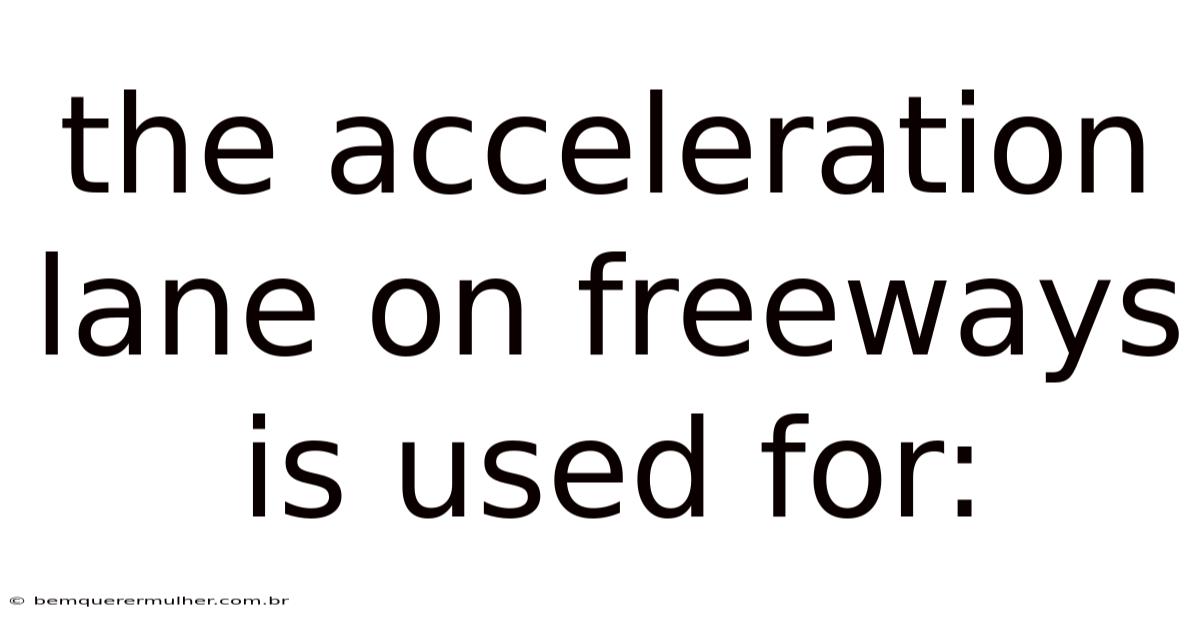 Acceleration lanes serve several vital functions in freeway operations. Their primary purpose is to allow vehicles entering the freeway to gradually increase their speed to match the prevailing traffic flow, minimizing disruptions to existing vehicles. Without these lanes, merging directly from a stop or low-speed maneuver would create dangerous situations where high-speed traffic must abruptly slow down or swerve to accommodate slower vehicles Not complicated — just consistent..