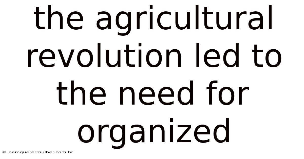 The Agricultural Revolution Led to the Need for Organized Societies: How Farming Changed Human Civilization Forever