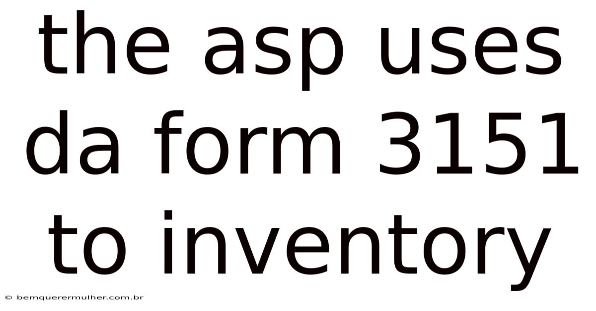 The ASP UsesDA Form 3151 to Inventory – a concise yet practical guide that explains how the Army Service Personnel (ASP) leverages this specific form for accurate property accountability.