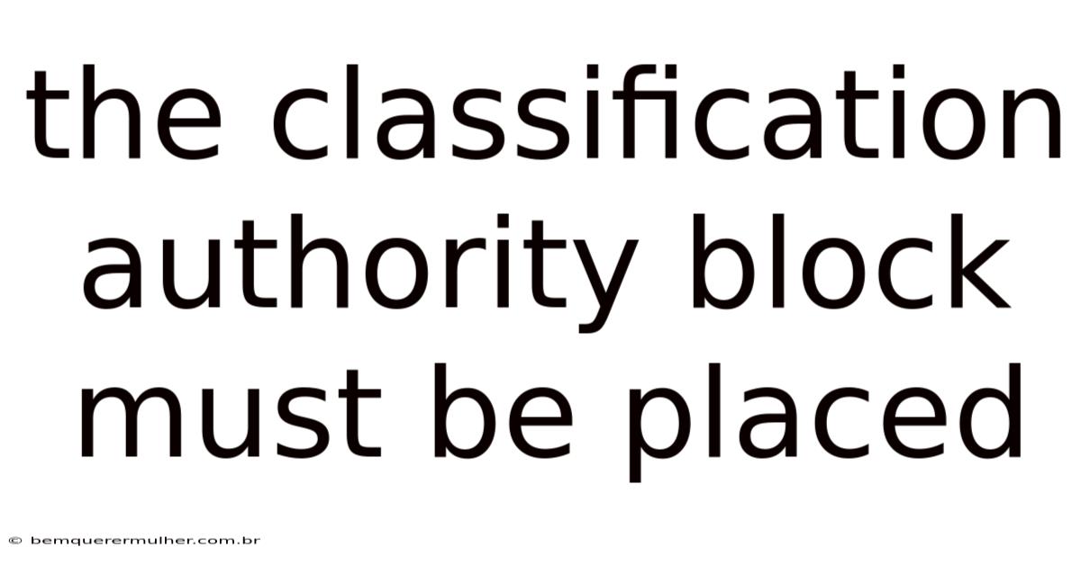 The precise placement of the classification authorityblock is not merely a technical detail; it is a critical operational requirement fundamental to the integrity, security, and functionality of complex systems. Placing it incorrectly can lead to catastrophic failures, security breaches, or non-compliance. This specific block acts as the gatekeeper, determining the level of sensitivity assigned to data or operations and enforcing the necessary controls. Understanding why its location is mandated and how to ensure correct placement is essential for anyone responsible for system design, security, or data governance Simple as that..