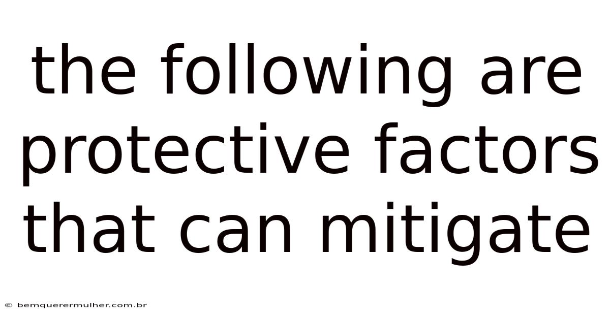 Protective Factors That Can Mitigate Risk and develop Resilience