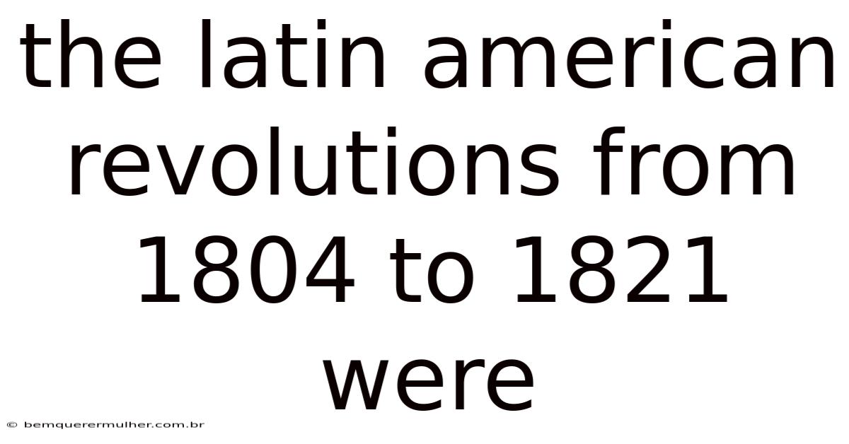 The period between 1804 and 1821 marked a watershed moment in world history, as colonies in the Americas asserted their sovereignty and established independent republics. In real terms, from the Haitian Revolution’s radical challenge to slavery to the sprawling wars of independence that liberated Mexico, Colombia, and Peru, each movement shared common catalysts yet pursued distinct strategies. Understanding the Latin American revolutions from 1804 to 1821 were requires examining the intertwined forces of ideology, economics, and social structure that propelled diverse populations toward self‑determination Easy to understand, harder to ignore..