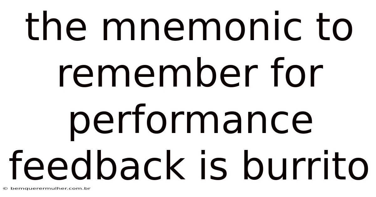 Understanding the right mnemonic can make a world of difference when it comes to retaining information for performance feedback. Day to day, one of the most effective and memorable techniques is the mnemonic to remember for performance feedback is burrito. This phrase is not just a catchy way to remember a key concept; it’s a powerful tool that combines simplicity with clarity. Let’s dive into the importance of such mnemonics and explore how the burrito metaphor can help you grasp complex ideas quickly.