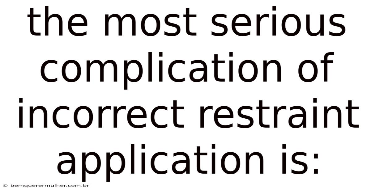Asphyxia is a serious and potentially fatal complication of incorrect restraint application. Understanding the causes, mechanisms, and prevention strategies is essential for anyone involved in the use of restraints. By ensuring proper training, regular assessment, and immediate intervention when necessary, the risk of asphyxia can be significantly reduced. Always prioritize the safety and well-being of the individual, and never hesitate to seek medical attention if asphyxia is suspected.