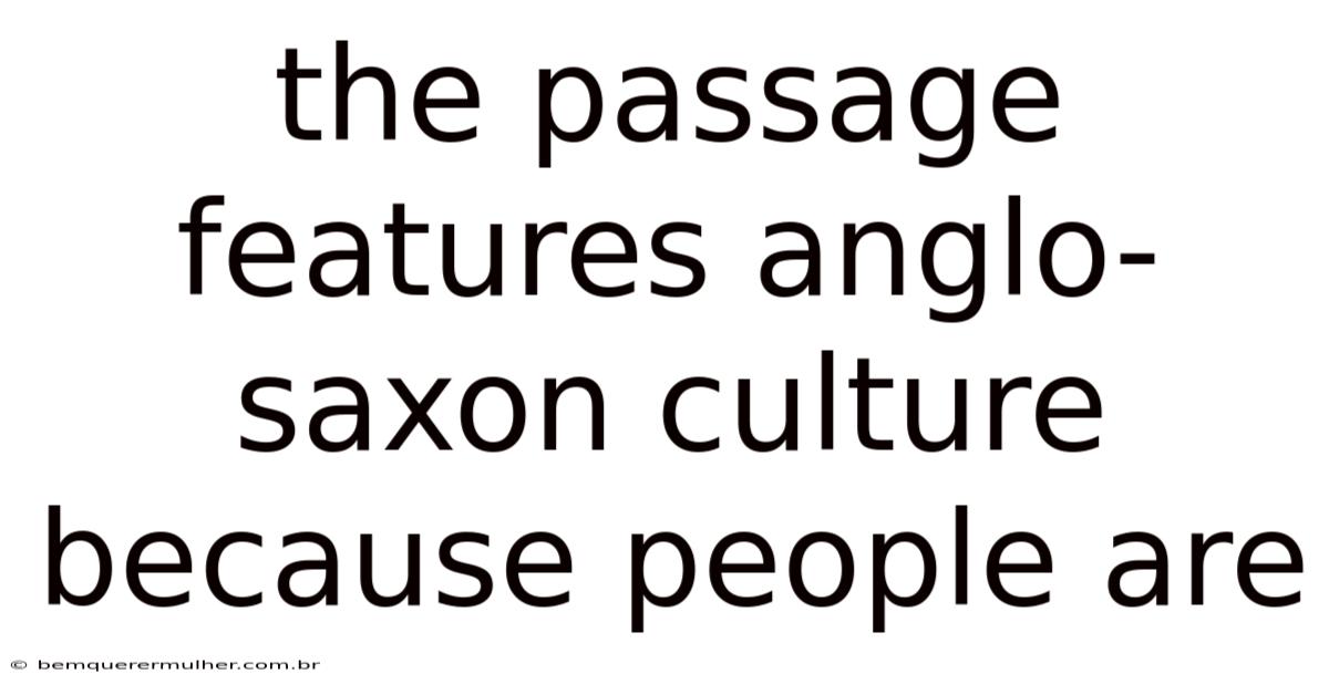 The phrase “the passage features Anglo‑Saxon culture because people are …” invites us to explore how a specific text can serve as a cultural mirror, revealing the values, social structures, and everyday practices of early medieval England. By dissecting linguistic clues, narrative motifs, and character behavior, we can identify the hallmarks of Anglo‑Saxon culture embedded in the passage. This analysis not only clarifies why the excerpt feels distinctly Anglo‑Saxon but also demonstrates how literature functions as a living record of a people’s worldview, religious beliefs, and communal norms Simple as that..