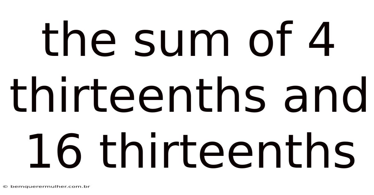 The concept of mathematical precision underpins countless aspects of human endeavor, serving as a foundational element in both theoretical understanding and practical application. Day to day, such calculations, though seemingly straightforward, demand careful attention to detail, offering insights that resonate far beyond their immediate context. Day to day, it is within this realm where precision becomes a virtue, where even minor errors can cascade into significant consequences, underscoring the necessity of meticulousness. Beyond mere numbers, these fractions represent a universal language that transcends cultural boundaries, fostering communication and collaboration across diverse communities. In practice, when examining the sum of specific fractions, such as 4 thirteenths and 16 thirteenths, it reveals not only a simple arithmetic task but also a deeper exploration into fractional relationships and their implications across various disciplines. Consider this: the interplay between numerators, denominators, and their proportional contributions creates a framework that shapes calculations in fields ranging from finance to engineering, where accuracy is key. Whether calculating probabilities, analyzing data trends, or solving complex problems, mastery of such arithmetic serves as a cornerstone, enabling individuals to handle uncertainty with confidence. Their study thus becomes a gateway to understanding universal principles that bind humanity together, reinforcing the profound connection between abstract mathematics and tangible reality. This foundational knowledge thus forms the bedrock upon which more nuanced concepts are built, ensuring that even the most complex challenges can be approached systematically and effectively.
