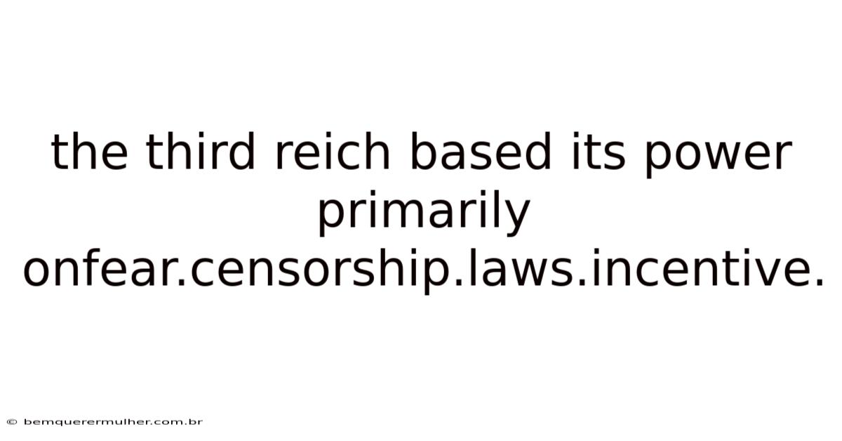 The Third Reich Based Its Power Primarily Onfear.censorship.laws.incentive.